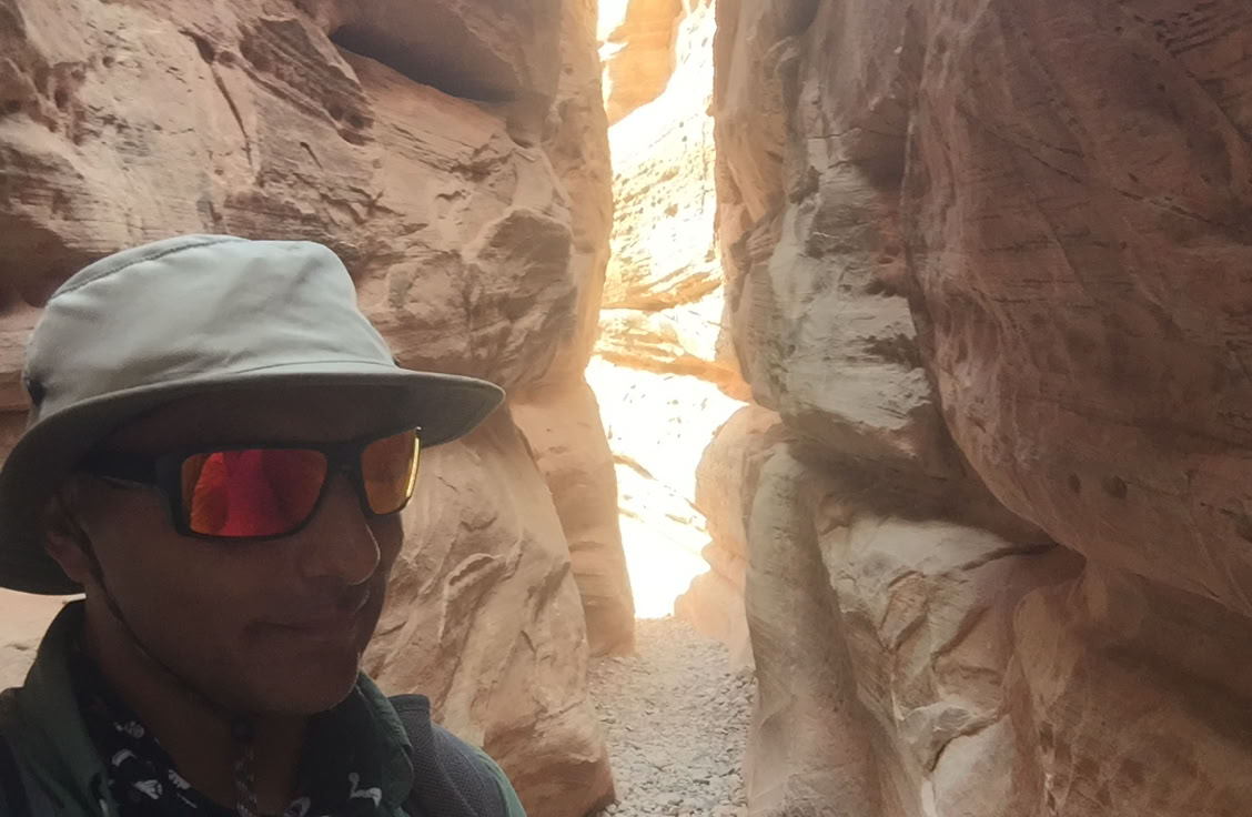 Once we got there, we ended up filming inside a small cave with petroglyphs. Space was tight—very tight—and I found myself wedged into an oddly shaped corner, twisted at an angle that I’m pretty sure no fitness program would ever recommend, trying to boom the shot without dipping into frame.